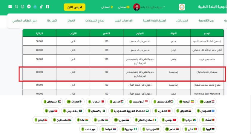 Pengumuman pemenang disampaikan melalui situs resmi penyelenggara https://www.baldatayiba.com/ar/prizes. Kompetisi ini diikuti oleh 178 peserta dari berbagai negara, menunjukkan bahwa ajang tersebut merupakan kompetisi akademik yang ketat, prestisius, dan memiliki kredibilitas internasional.